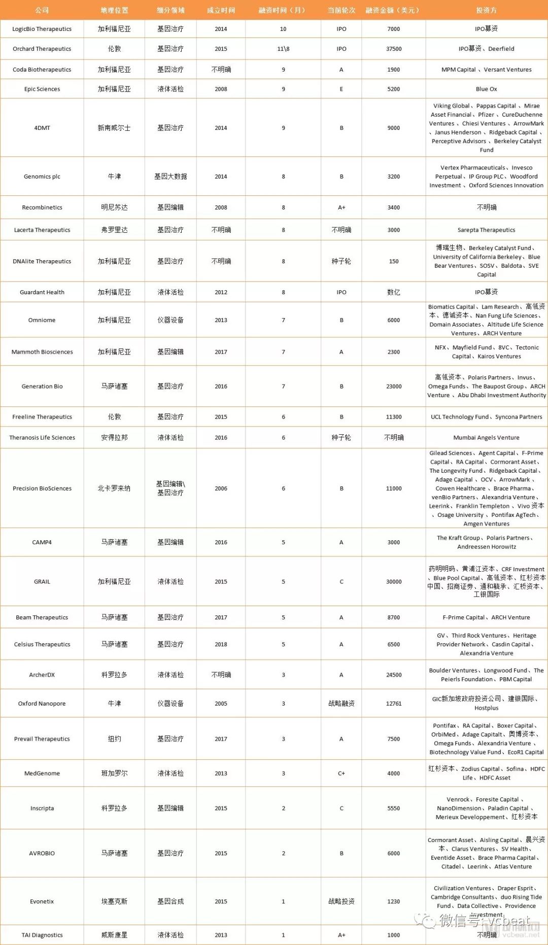 张锋、David Liu以及J. Keith Joung三位CRISPR领域的“大神级人物”联合创办的新公司Beam Therapeutics是全球首家利用单碱基编辑技术开发精准基因药物的创新公司,A轮融资便获得了8700万美元。Precision BioScience也获得了1.1亿美元的B轮融资,并获得了吉利德、安进等产业投资者青睐。