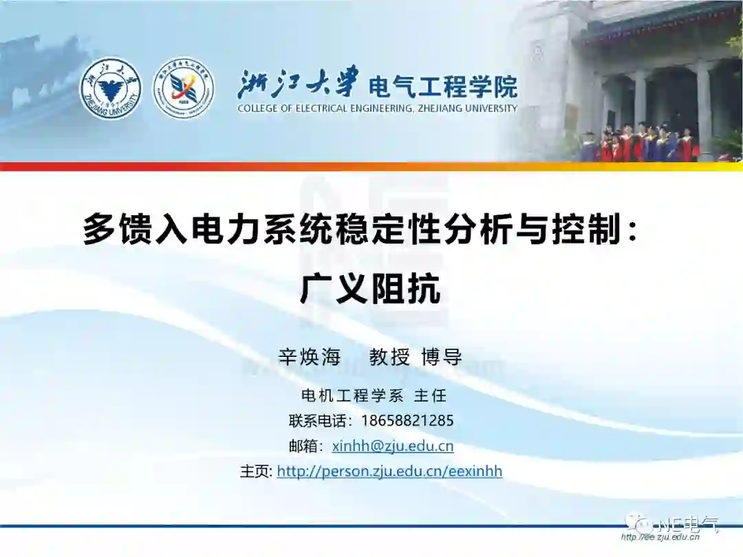 辛焕海,1981年3月生,江西萍乡人,电气学院电机工程学系主任,教授,博导,主要研究方向为高比例新能源电力系统稳定性分析与控制。2007年获浙江大学电力系统及其自动化博士学位,入选浙江大学“求是青年学者”、浙江省151第三层次人才等人才计划。以第一作者/通信作者身份发表SCI论文40余篇,EI论文百余篇,论文被引用千余次;获得2014年度WeGAT国际会议、2013和2016年度IEEE PES国际会议最佳论文奖,中国科协百篇优秀科技论文奖,中国电机工程学报特别贡献奖。主持国家自然科学基金项目4项,参与国家自然科学基金重点项目1项(排名第2);作为技术负责人完成863项目《风光流混合供电集成控制系统》并在舟山市摘箬山海岛电网中示范应用;担任2017年国家重点研发计划《可再生能源发电基地直流外送系统的稳定控制技术》项目(基础研究类)的课题负责人。