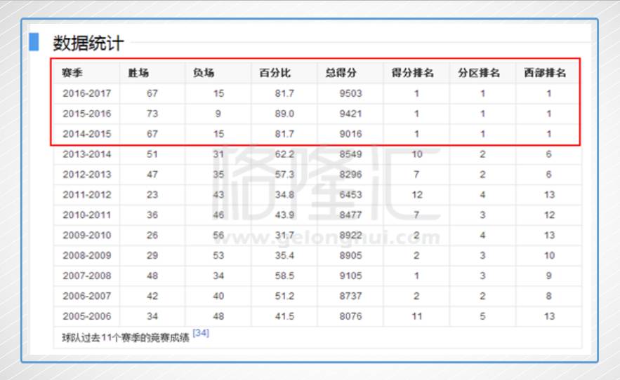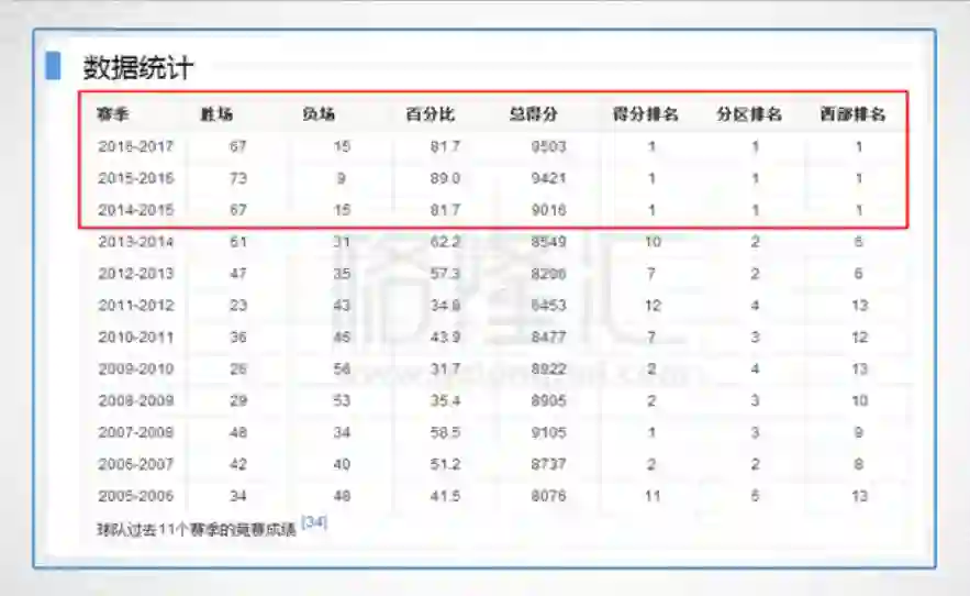 有了它,勇士的球员们可以看到并分析每一次运球、传球、速度、和队友之间的距离以及在这场比赛中跑了多少英里。比如,库里每场比赛平均上场时间为34分钟,跑的距离是2.4英里。勇士在头两年使用SportVU的时候,获胜场数还不到一半。但随着团队学会如何使用数据,勇士的获胜率就开始攀升。2013年胜率为57%,2014年为62%。15年常规赛达到82%的胜率,16年的常规赛则高达88%,73胜更是超过了95-96赛季乔丹率领的公牛队的72胜10负的历史记录啊。