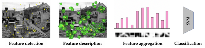 在新千年的第一个十年里,视觉识别系统的典型架构是一个精心制作的特征提取器,通常是检测图像中有趣的点,并以一种对视角转换和对比度变化具有鲁棒性的方式提供它们的局部描述,然后是一个简单的分类器,一般都是使用支持向量机SVM,少部分情况会使用一个小型神经网络。