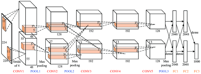 Krizhevsky、Sutskever和Hinton在多伦多大学开发的一个CNN架构成功地以极大的优势击败了所有的竞争方法,如基于该领域几十年研究的智能工程特征检测器。AlexNet(为了纪念它的开发者Alex Krizhevsky)在参数和层数方面比它的前辈LeNet-5大得多,但从概念上来说是一样的。关键的区别在于使用图形处理器(GPU)进行训练。