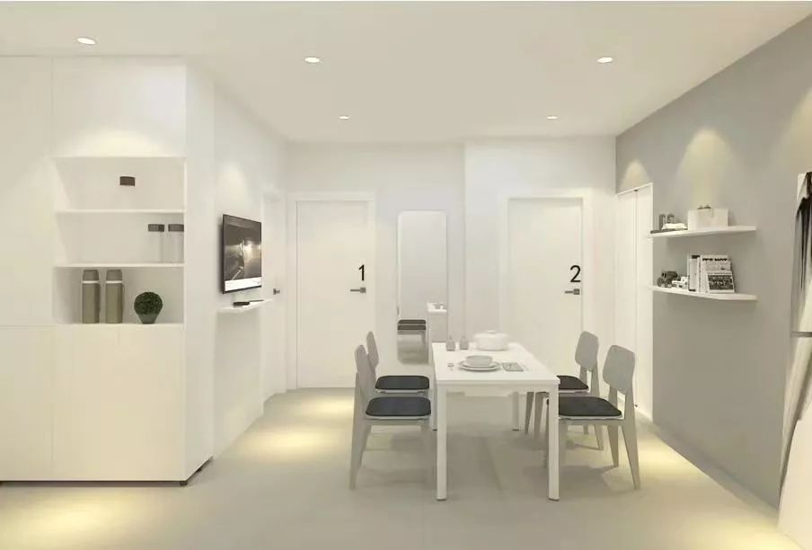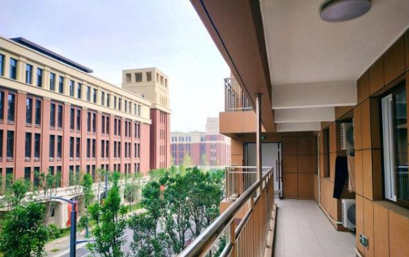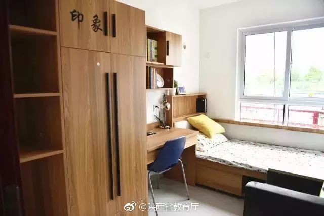 而学校的宿舍,为单人单间,五室一厅并配有独立卫浴。