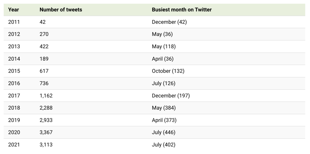 而之所以如此,数据分析网站认为是因为马斯克在推特上发表过众多热点话题。