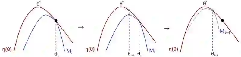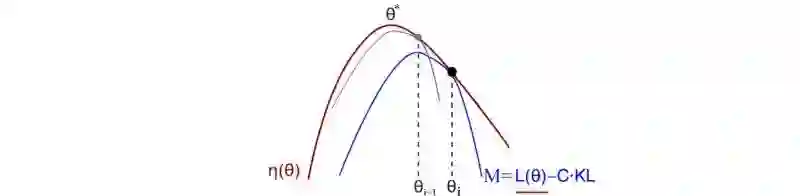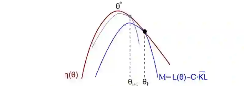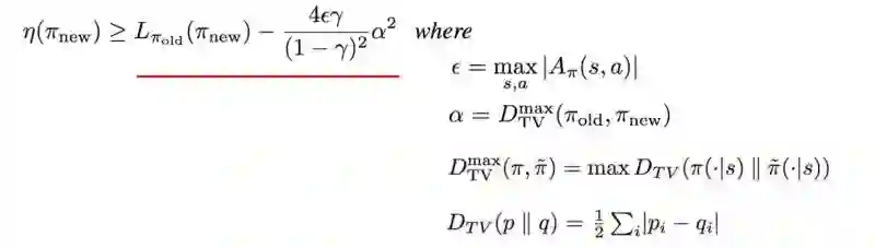 当 KL( θi, θi )=0 时, M 在近似于预期的奖励的局部值:这是对MM算法的要求。接下来我们讨论下界函数M的细节 。TRPO 论文附录A中的两页证明 η的有一个确定的下限 。