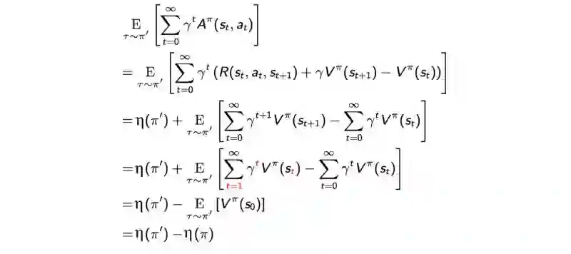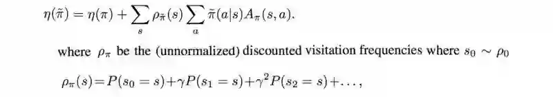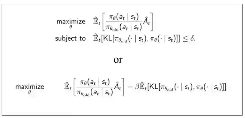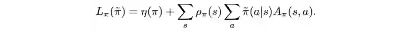 简而言之,我们想最大化优势函数:动作值函数(奖励的最大期望)减去对应状态拥有的基准值。约束条件为新旧策略的差异不能过大。本文余下部分将数学证明该约束问题。