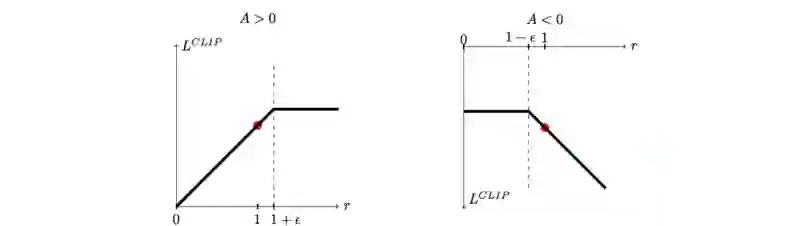 并且,如果新策略严重偏离旧策略,我们会构建一个新的目标函数来剪切(clip)被估计为优势()的函数。新的目标函数为: