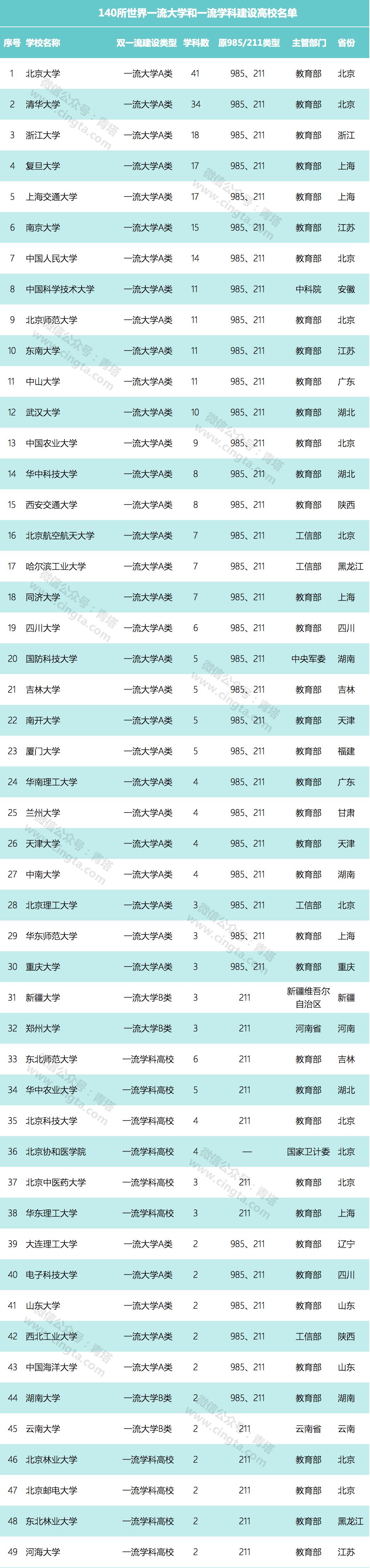 2017年9月21日,教育部、财政部、国家发展改革委日前印发《关于公布世界一流大学和一流学科建设高校及建设学科名单的通知》,正式公布了42所世界一流大学和98所一流学科建设高校及建设学科名单。