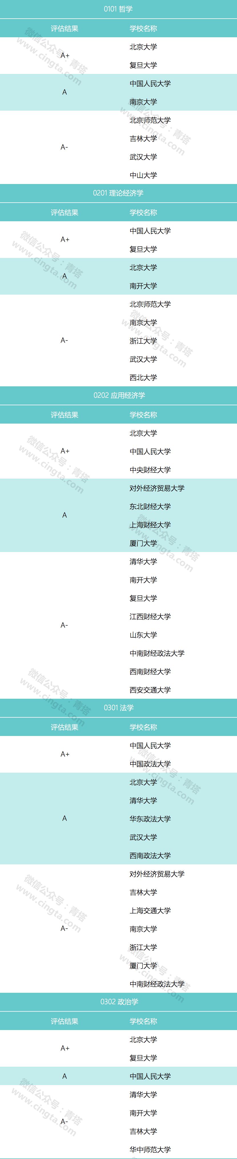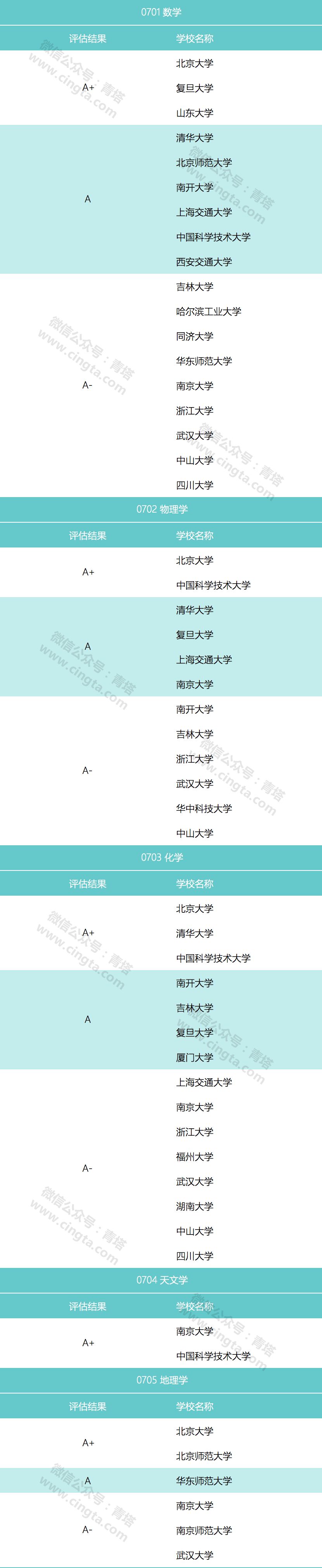 根据“学科整体水平得分”的位次百分位,将前70%的学科分为9档公布:前2%(或前2名)为A+,2%~5%为A,5%~10%为A-,10%~20%为B+,20%~30%为B,30%~40%为B-,40%~50%为C+,50%~60%为C,60%~70%为C-。