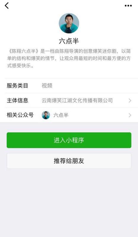 陈翔六点半开发的微信小程序“ 六点半 ”,是一款泛娱乐类视频应用。