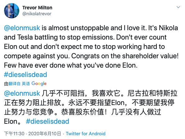 Milton 和马斯克一样,很清楚怎样利用媒体和舆论,来炒作知名度。尼古拉第一次被大众所知,就是 2018 年它把特斯拉告上法庭,起诉特斯拉 Semi 抄袭了自己半挂卡车 Nikola One 的外观设计。官司拖了两年,但并不妨碍尼古拉借此一举成名。