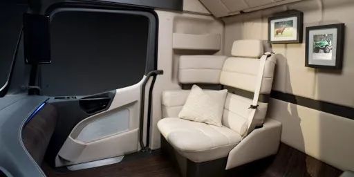 续航优势,是尼古拉对标电动车的最大卖点。除了正面宣传外,尼古拉还在内部设计中做足功课,比如车内给司机配备了床铺、40 英寸的大电视、冰箱、甚至还有微波炉。每处细节都告诉用户,这车可以开着上路过日子,完全不用担心开到半路没电。