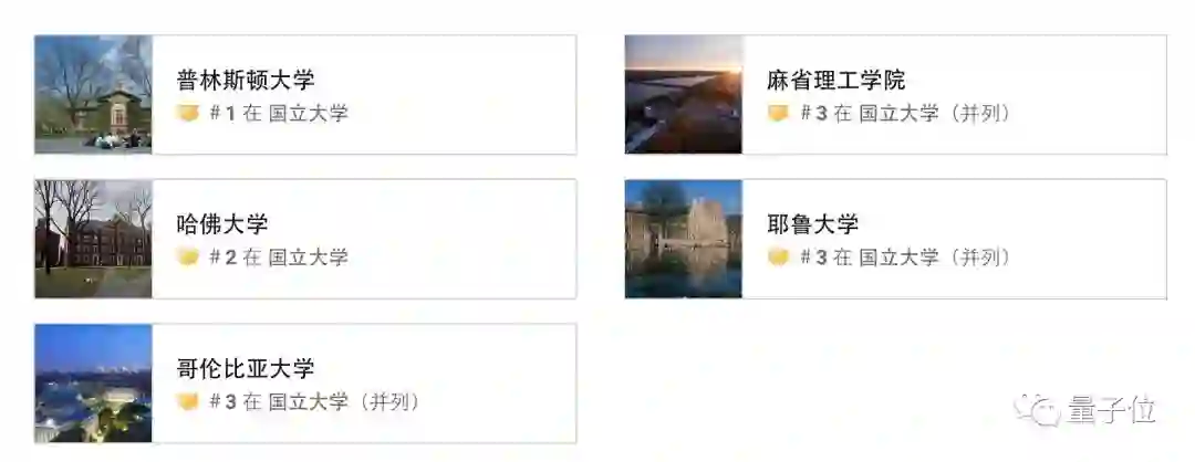 后面开始就有了变化,今年有三所学校并列第三:哥伦比亚大学、麻省理工学院 (MIT) 以及耶鲁大学。