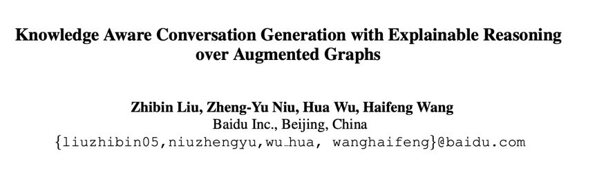 EMNLP 2019收录论文分享《Knowledge Aware Conversation Generation with Explainable Reasoning over Augmented Graphs》。