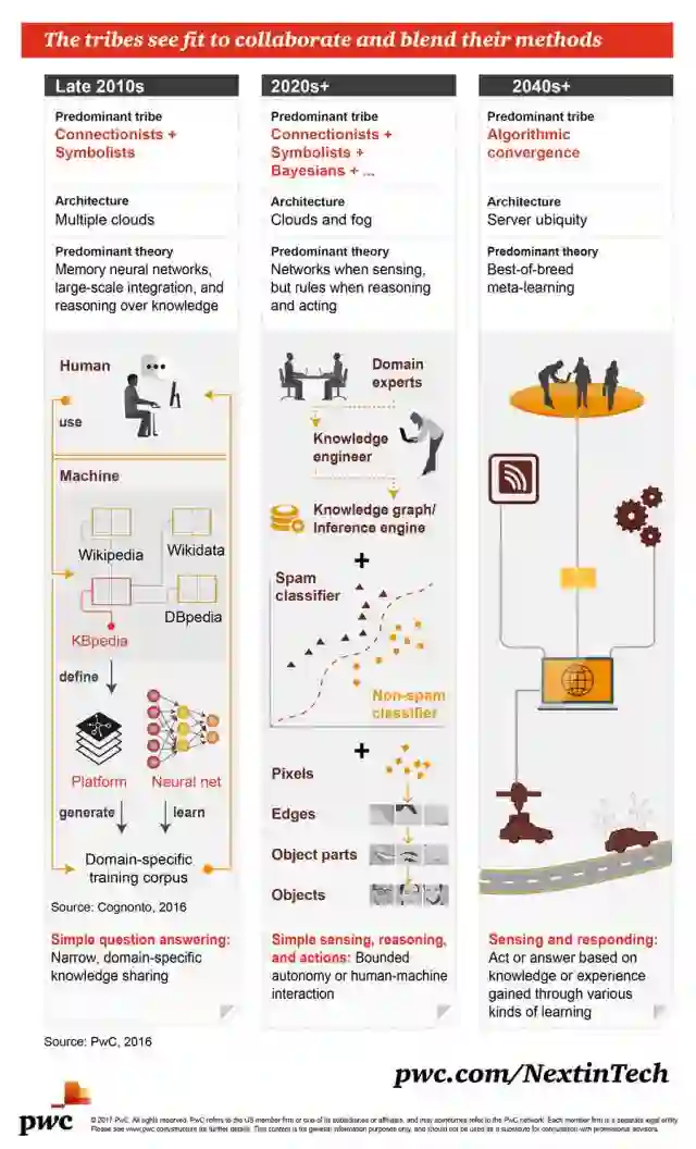但你了解现在正在发生的这场变革吗?四大会计师事务所之一的普华永道(PwC)近日发布了多份解读机器学习基础的图表,其中介绍了机器学习的基本概念、原理、历史、未来趋势和一些常见的算法。为便于读者阅读,机器之心对这些图表进行了编译和拆分,分三大部分对这些内容进行了呈现,希望能帮助你进一步阅读。