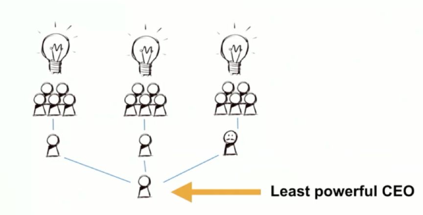 这些细胞需要自我维持、独立运作,对自己的工作负责,并且十分强调速度和质量。有些团队由设计师领导,有些团队由产品经理领导……这些领导又被称为“底层CEO”,是承担风险并领导公司的人。