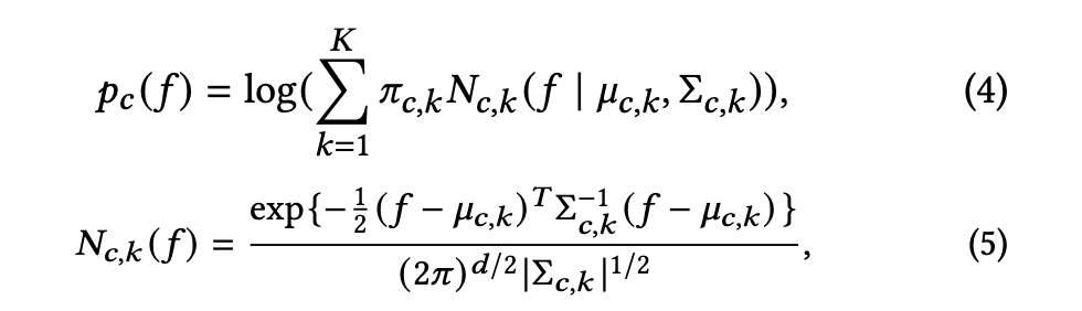 为了缓解传统单质心的表示能力的不足,我们使用高斯混合模型来代替传统的单质心模型如图 3 所示。高斯混合模型的对数概率密度由如下公式得出:
