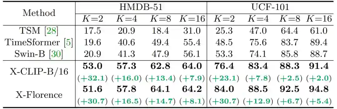 。这种显著的改进可以归因于所提出的视频 - 文本学习框架,该框架利用大规模的视觉 - 文本预训练和视频自适应的提示学习。