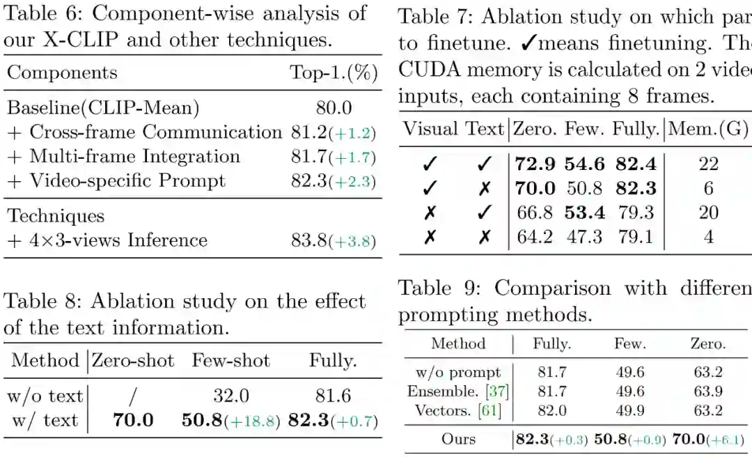 。研究者在消融实验中证明了性能增益更多来自于文本的使用,而非更强的预训练模型。