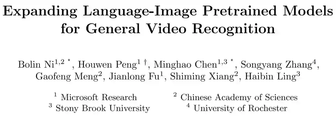 来自微软的研究者提出了将语言 - 图像预训练模型拓展到通用视频识别的方法,在建模时序信息的同时,利用类别标签文本中的语义信息