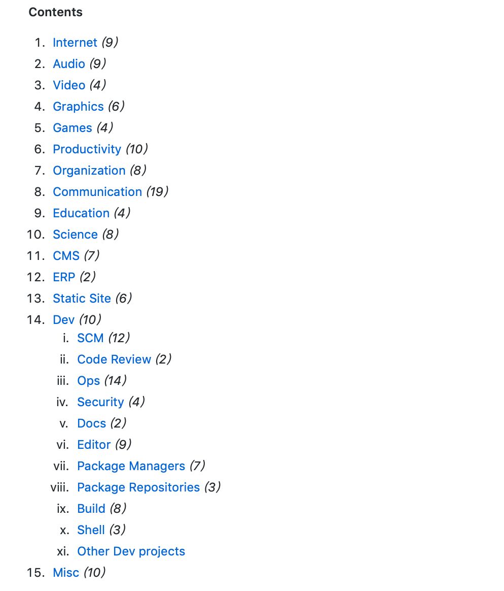 这个主题里涉及的都是和软件开发相关技术的开源项目,涉及代码审查、Ops、安全、文件、编辑器、软件包管理、软件包存储、Shell 等十大类,70 多个开源项目,大家可以从项目地址中 Get 到全部介绍。