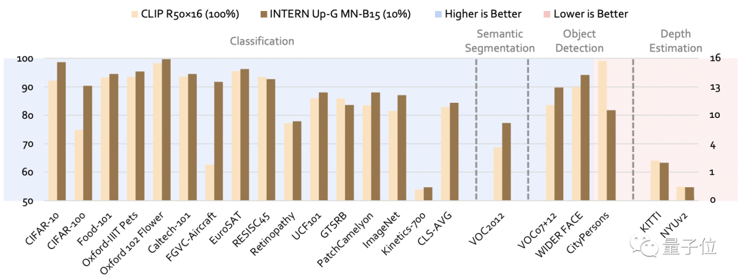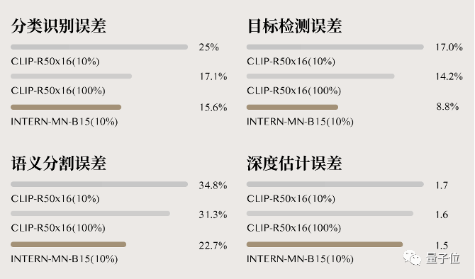 例如与当今最强的开源通用模型CLIP相比,在CV领域的四大任务26个数据集上,“书生”的平均错误率分别降低了40.2%、47.3%、34.8%和9.4%。