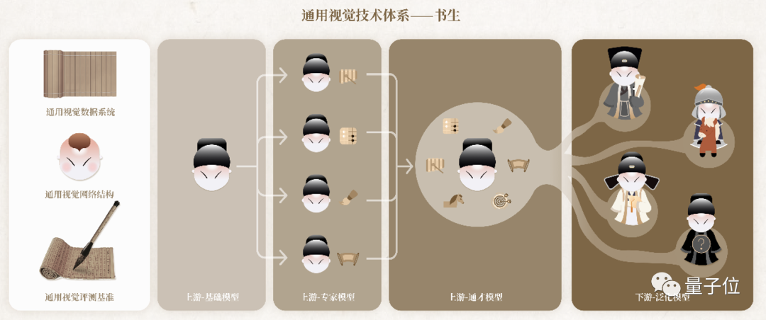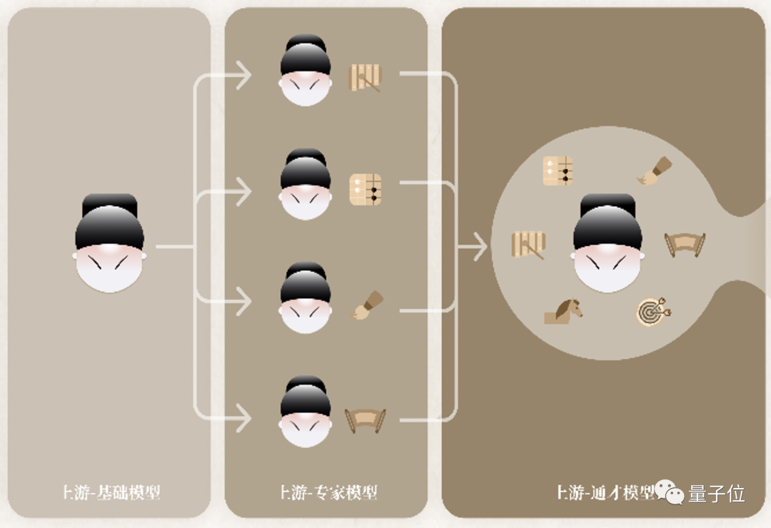 它们三个就像是“藏经阁”一样,奠定了在通往通才道路上海量知识和建模等能力的基础。