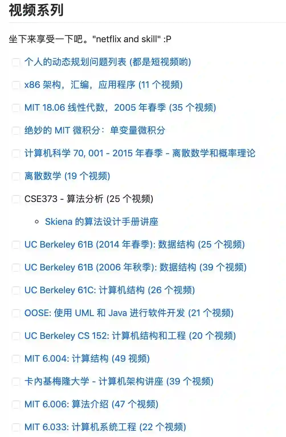 这份指南里面包含 Google 相关的介绍视频、面试过程、教学资源,同时也有数据结构、算法、密码学等计算机专业的知识讲解。