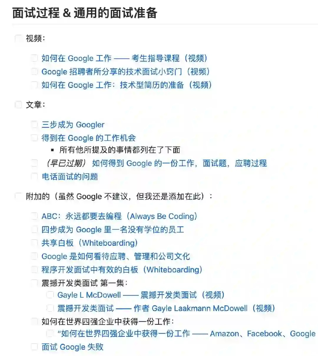 尽管 John 最后没去成谷歌(去了亚马逊),但他留下的这份指南,还是让诸多后来者受益无穷,在此也对作者表示下感谢。