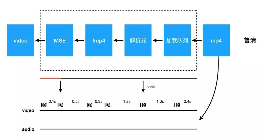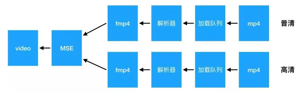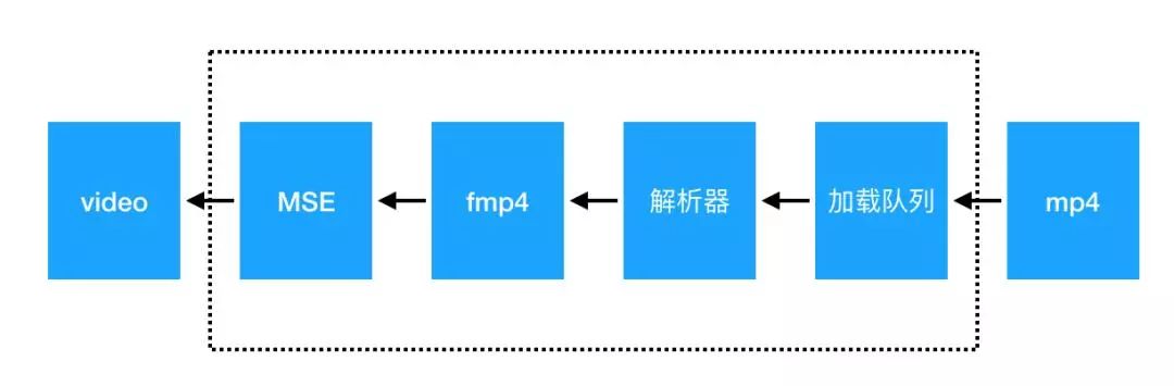 首先,我们改变对 mp4 视频的播放流程,不再直接使用 video 的 src 来播放,因为我们没有任何可以操作的空间。video不仅支持 src 属性还支持 Blob 对象,我们就是利用后者。播放的流程如下: