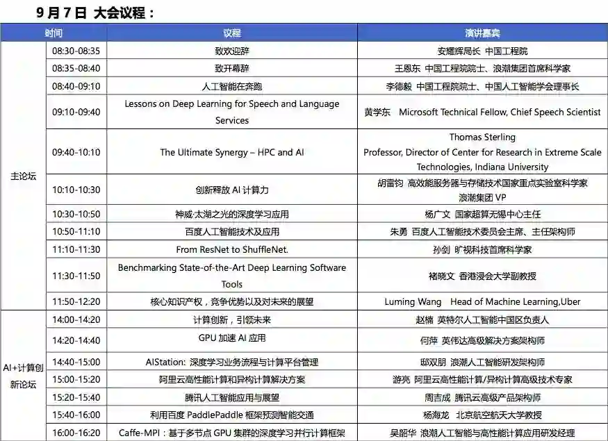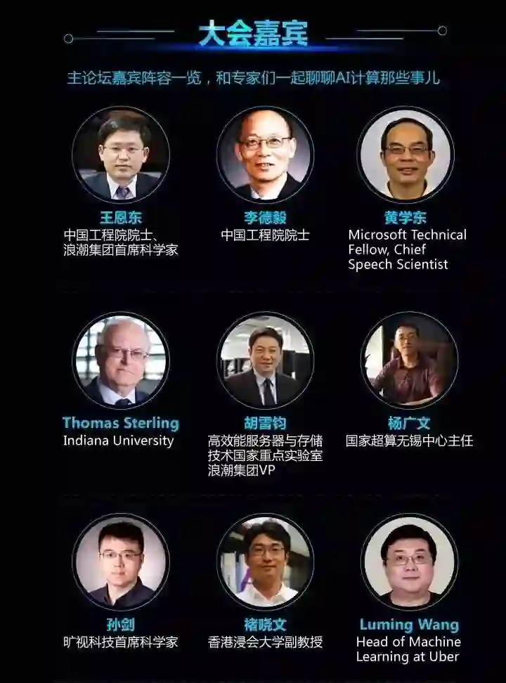 【新智元导读】首届AI计算大会。中国工程院王恩东院士、李德毅院士、微软技术院士黄学东、集群超算架构创始人Thomas Sterling、浪潮副总裁胡雷钧、国家超算无锡中心主任杨广文、百度人工智能技术委员会主席朱勇、旷视科技首席科学家孙剑、深度学习框架评测专家褚晓文、Uber机器学习主任王鲁明等业界专家,将带来人工智能计算与应用的精彩前沿报告。