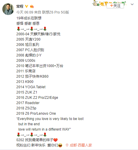 联想常程确认离职:19年成长在联想,感悟感谢感恩