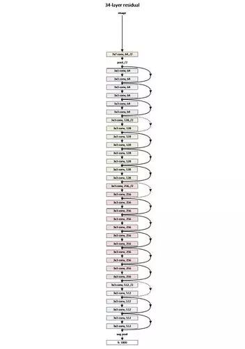 图2:缩减版的深度残差学习网络,仅有34层,终极版有152层,自行感受一下