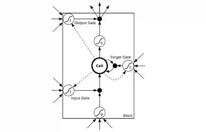 为了解决时间上的梯度消失,机器学习领域发展出了长短时记忆单元LSTM,通过门的开关实现时间上记忆功能,并防止梯度消失,一个LSTM单元长这个样子: