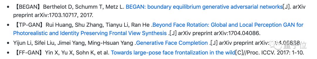 在热门资源方面,比如人脸生成,仅2018年论文就收录了35篇论文。对于一些知名的GAN算法,作者还为它们加上标识,方便读者检索,比如【DR-GAN】、【FF-GAN】。