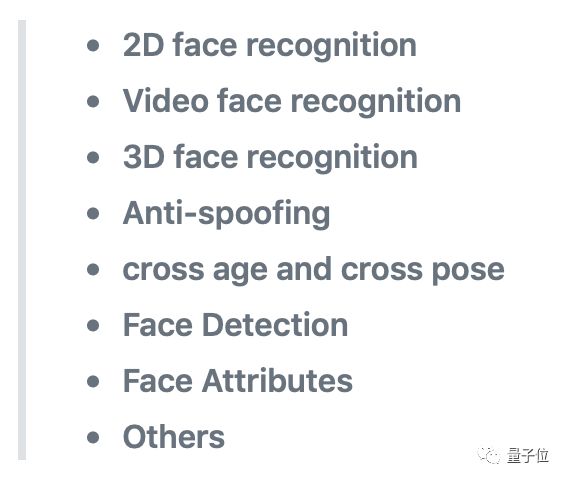 2D人脸识别、视频人脸识别、3D人脸识别、反欺骗、人脸检测、人脸属性等等。