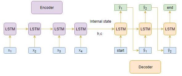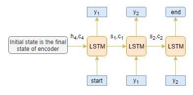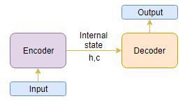 最后一个时间步的隐藏状态(hi)和单元状态(ci)用于初始化解码器。请记住,这是因为编码器和解码器是两套LSTM架构。