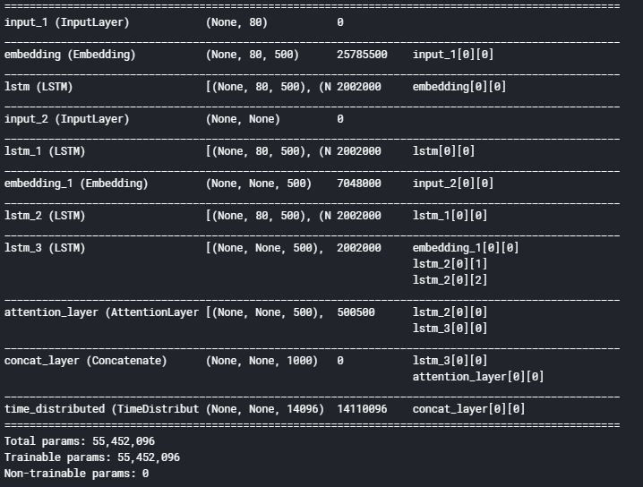 编码器长短时记忆模型(LSTM)读取整个输入序列,其中在每个时间步,一个单词被送到编码器。然后,它在每个时间步处理信息并捕获输入序列中存在的上下文信息。