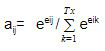 a23= exp(e23)/(exp(e21)+exp(e22)+exp(e23)+exp(e24))