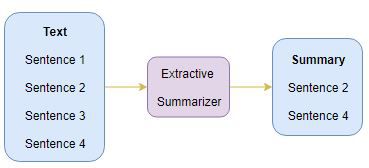 这个名字透露了这种方法的作用。我们从原文中找出重要的句子或短语,并从中抽取。这些抽取出的句子将成为我们的总结。下图简要说明了抽取式摘要: