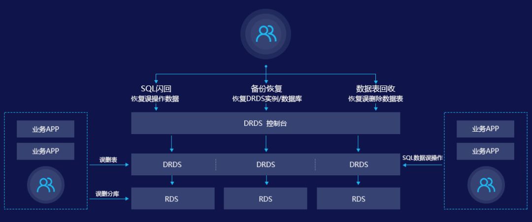 针对以上的几种场景,DRDS 数据恢复都提供了相应的恢复能力,如下图所示: