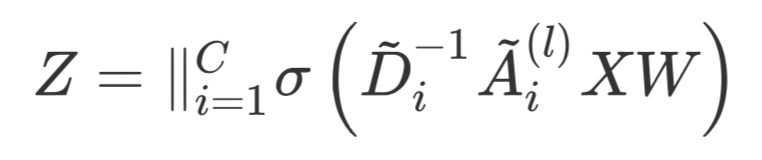 这里采用经典 GCN 的聚合⽅式。针对第 i 条元路径,通过聚合得到的节点表示为