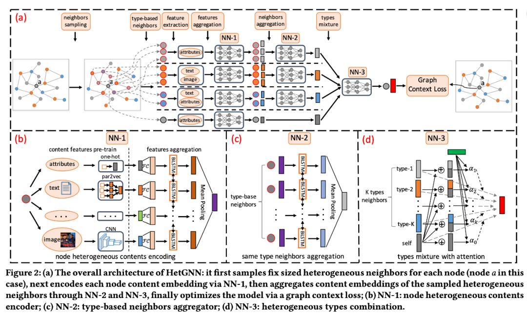 可以看出,HetGNN 也是经典的层次聚合,只不过节点级别的聚合器选取了 LSTM。
