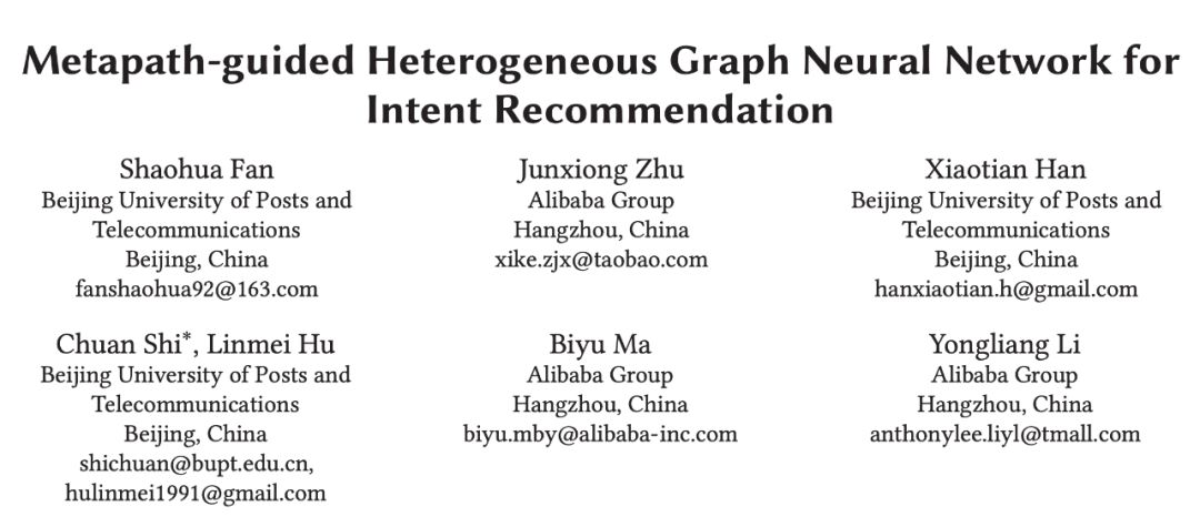 本文由北京邮电大学联合阿里巴巴发表在 KDD 2019, 是异质图神经网络在推荐中的应用。针对淘宝业务的实际需求,本文将 Intent Recommendation 场景建模为⼀个大规模异质图,并提出了⼀种基于异质图神经网络的推荐算法 MEIRec。作者也给出了⼀个 Intent Recommendation 的例⼦,⻅下图: