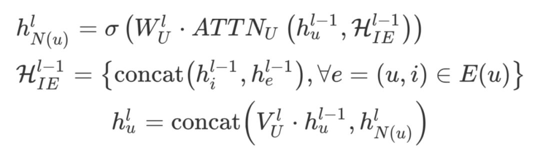 然后,更新 User/Item 的表示。 这里以 User 为例: