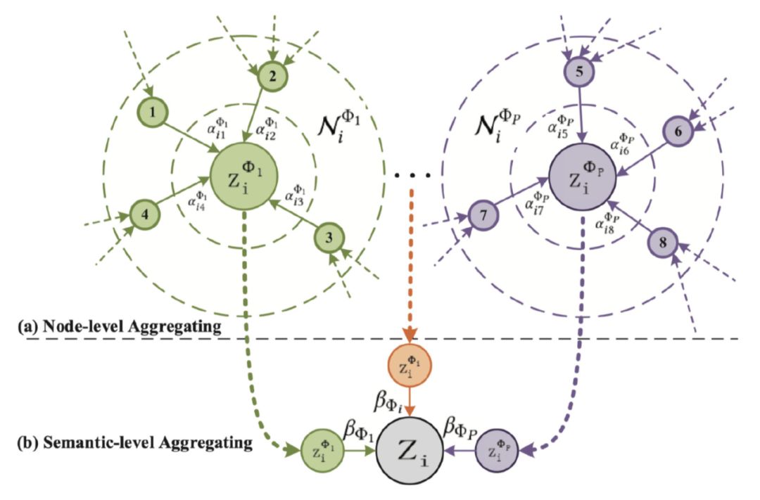代表节点 i 在元路径 Φ 下的表示。注意,