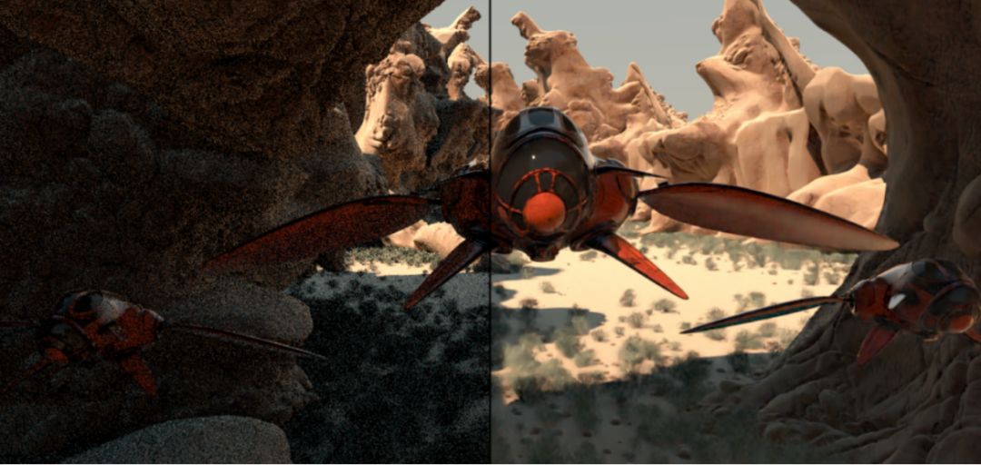 例如NVIDIA OptiX 5.0,作为NVIDIA在2017年推出的GPU渲染工具,可以运用机器学习技术可以补充画面缺失像素、智能去噪和光线追踪,打造出一种逼真的动画效果。
