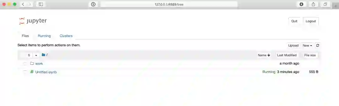 下面命令中的URL在你的机器上可能会略有不同,但是一旦你在你的浏览器中连接到该URL,你就可以访问一个Jupyter notebook环境了,该环境应该类似如下: