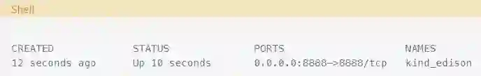 运行Docker容器后,你需要通过shell连接到它,而不是使用一个Jupyter notebook。为此,请运行以下命令来查找容器名称: