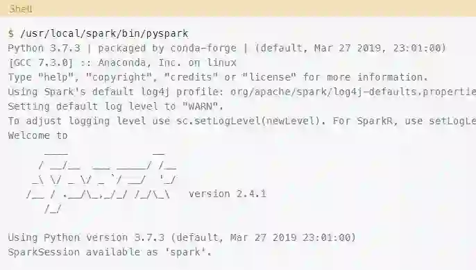 现在你可以使用Pyspark shell了,就像使用普通Python shell一样。