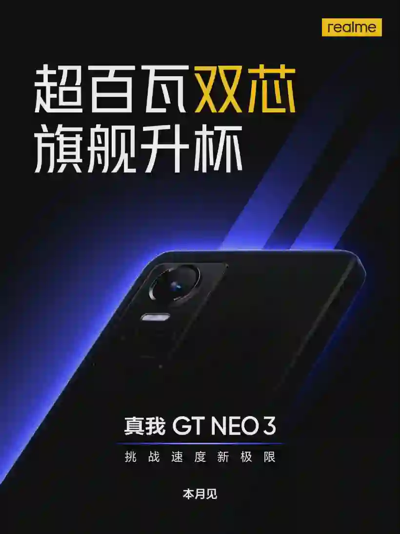 此外,近日已经有两款 realme 新机入网工信部,可能就是此前传闻的 realme GT Neo3。据工信部数据,真我 GT Neo3 配备一块 6.7 英寸 FHD+120Hz OLED 屏,支持 10Bit 色深,采用居中单孔超窄边框设计。前置 1600 万像素镜头,后置小米 12 用过的 5000 万像素索尼 IMX766 主摄,支持 OIS 光学防抖,同时拥有 800 万像素和一颗 200 万像素镜头。